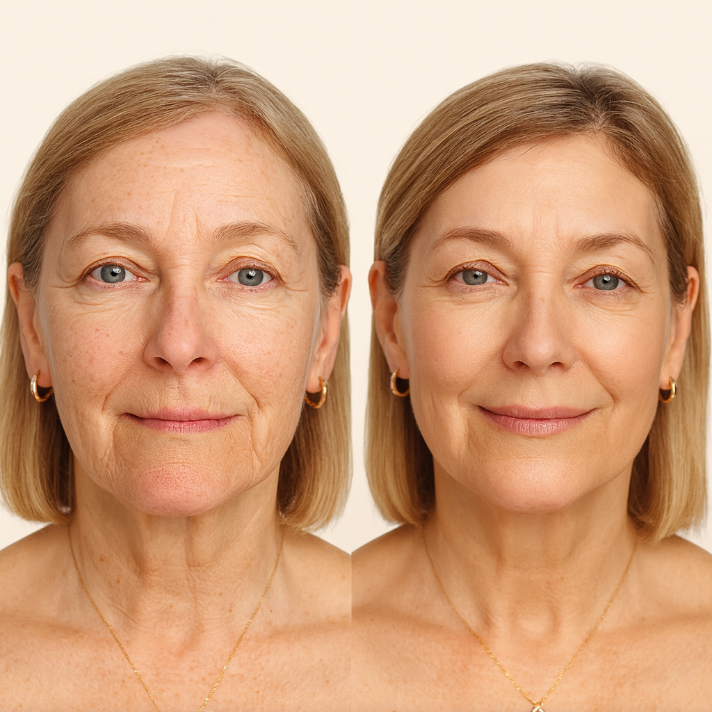 Yes, it's actually designed with mature skin in mind. Unlike traditional foundations that sit on top of your skin like a rigid film, ours uses a flexible hydration base that moves with your face. This means it doesn't settle into fine lines, smile lines, or dry patches as the day goes on. The formula blurs texture rather than emphasizing it, so you get smooth, natural-looking coverage without that creased or cakey appearance by afternoon.
